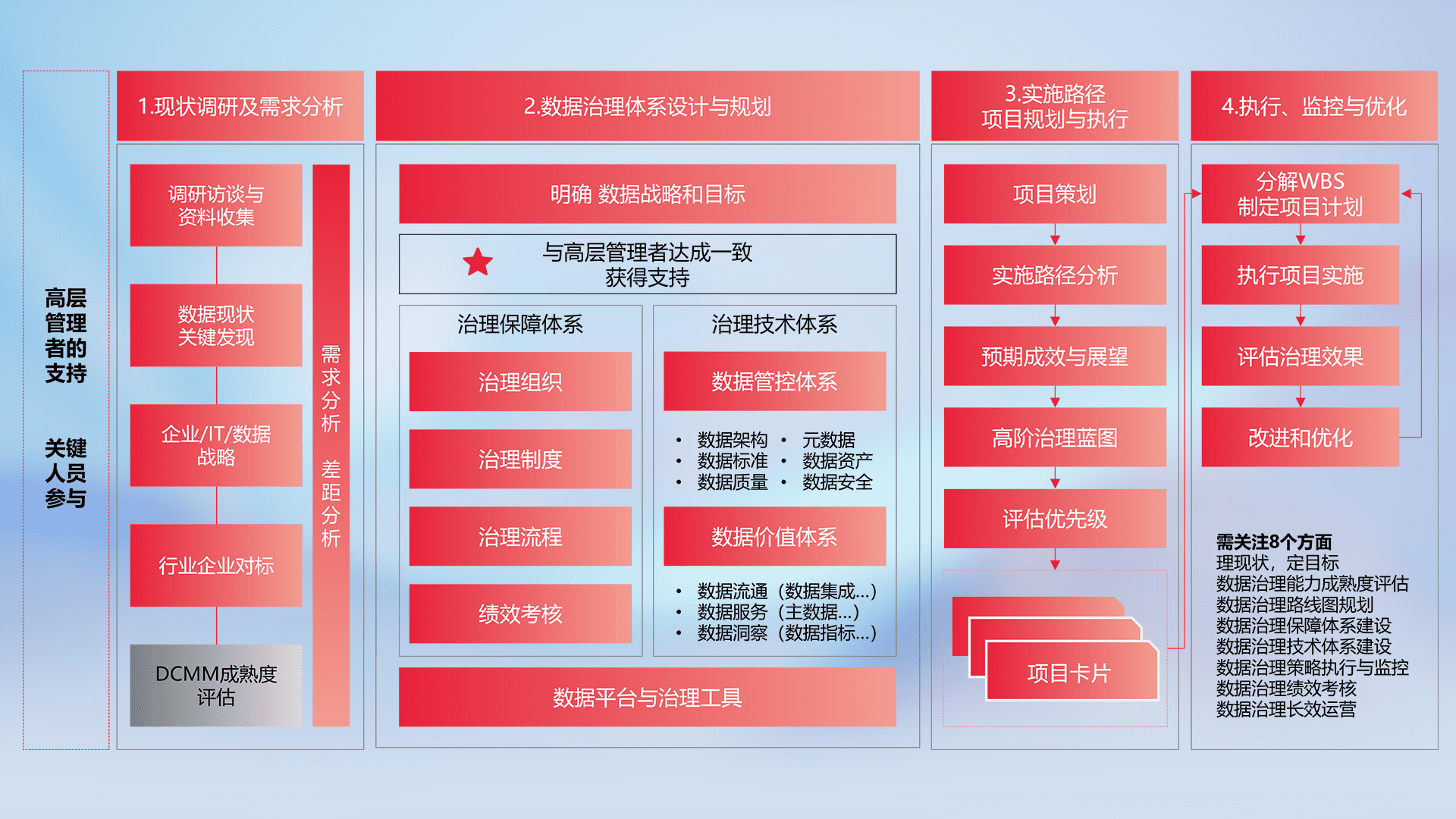 制定并执行统一的数据标准,,,,规范数据定义和格式,,,,消除冗余和不一致性,,实现跨部门和跨系统的数据一致性,,为企业提供标准化的数据基础。。。